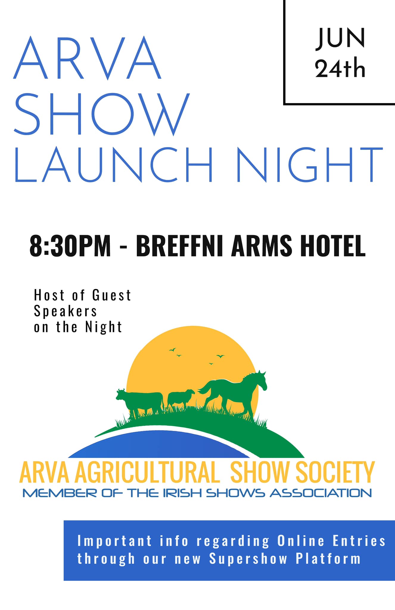 We are looking forward to seeing the whole community out as we prepare for a great show in 2023. We will have guest speakers on the night and a guide on how to enter Arva Show class online through SuperShows.